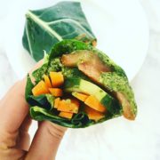 - Collard wraps: collard greens, detox pesto, tomato, cucumber, carrot