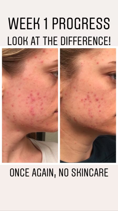 The coolest part about these results so far is that they have solely been with food and lifestyle changes. The only thing topically that I have been doing for my skin is putting fresh aloe vera gel on my face in the morning. I wanted to do a bit of an experiment to stop all skincare and solely rely on nourishing my skin from the inside out. That means, other than the aloe vera gel, I’ve only been washing my face with water! I was using so many cleansers, oils, and creams on my skin when it started to get really bad and during this process I haven’t used any. The one exception is that I did use the Cocokind Chlorophyll Mask once and I also used moisturizer if my face was feeling dry – I believe it was only a few times, definitely not everyday. So this just goes to show that treating the skin topically is not always the answer. I also have much less inflammation in my face, you can see in the photos below. These photos were taken 7 days apart!